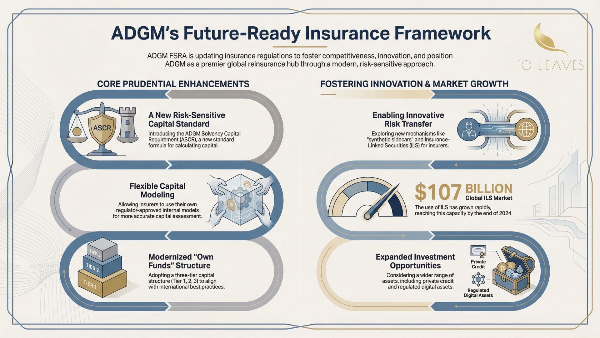 The proposals aim to transition ADGM towards a more risk-sensitive, economic capital-based regime, aligning the jurisdiction with leading international standards such as Solvency II, Bermuda’s BSCR, and the IAIS Insurance Core Principles. The overarching objective is to enhance competitiveness, support innovation, and position ADGM as a globally attractive hub for insurance and reinsurance activity.