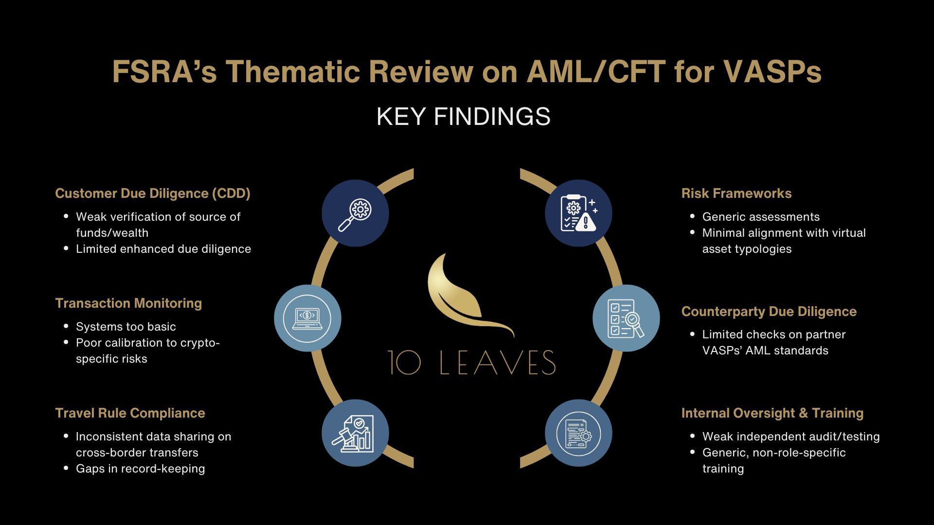 The Financial Services Regulatory Authority (FSRA) of the Abu Dhabi Global Market (ADGM) has released a detailed Thematic Review focused on the Anti-Money Laundering (AML), Counter Financing of Terrorism (CFT), and Targeted Financial Sanctions (TFS) frameworks of licensed Virtual Asset Service Providers (VASPs).